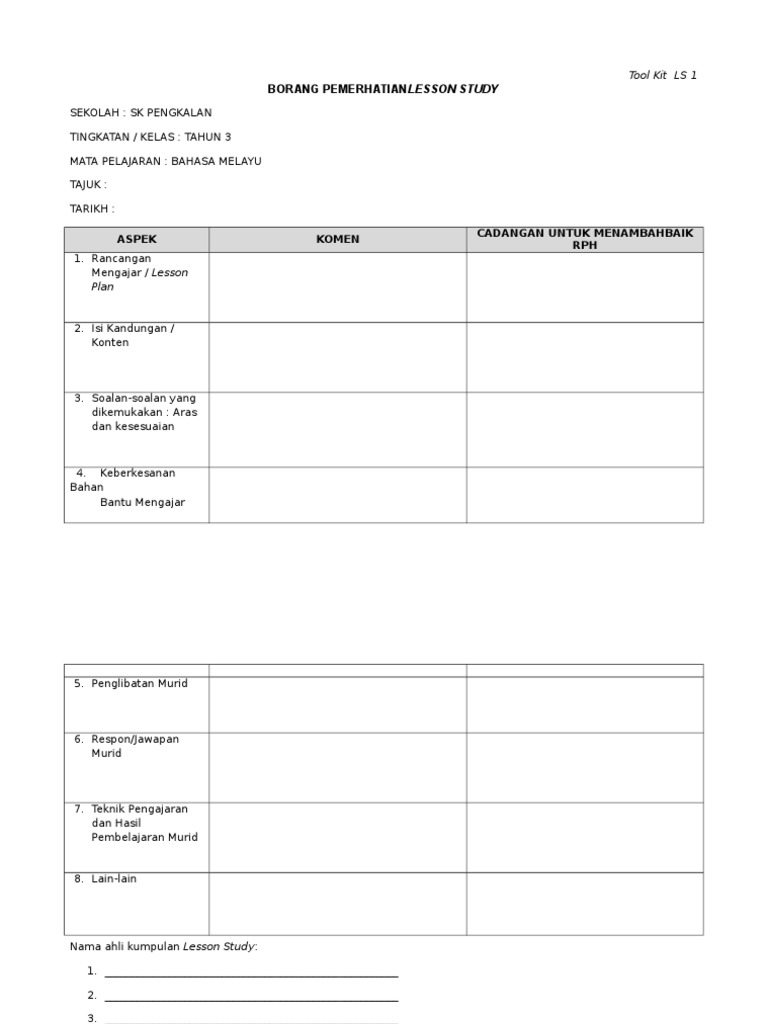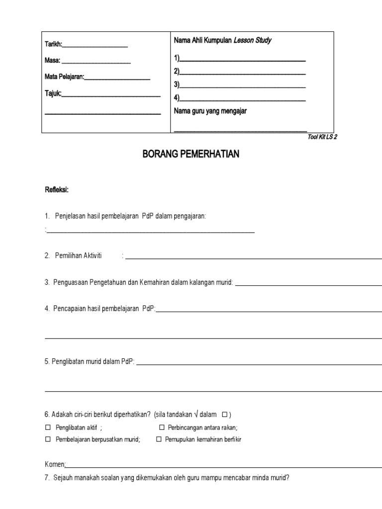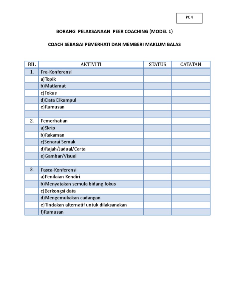Plc Borang Pelaksanaan Model Pengajaran Peer Coaching Pdf
